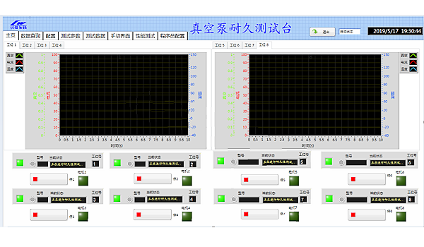 真空泵常規(guī)性能檢測:檢測內容有最大啟動電流、穩(wěn)態(tài)工作電流、最大真空度、設定某真空度所對應的時間(可設多個真空度)、啟動時間、最大真空度對應的時間等。
